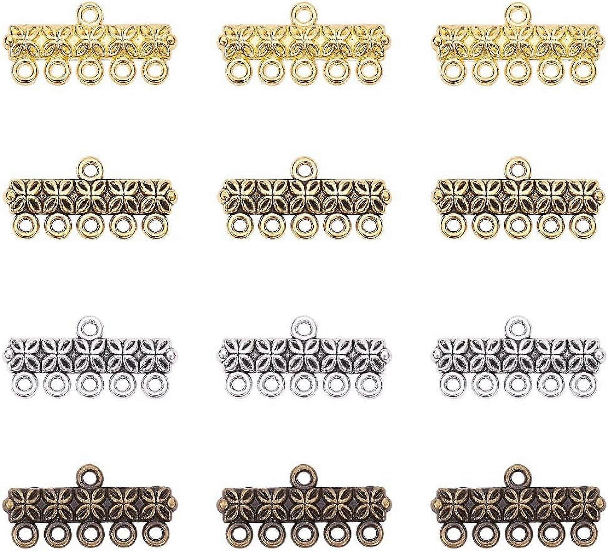 Alloy Tibetan Silver Chandelier Components Rectangle with Flower Mixed Color 25x12mm Hole: 1.5mm 120pcs/box