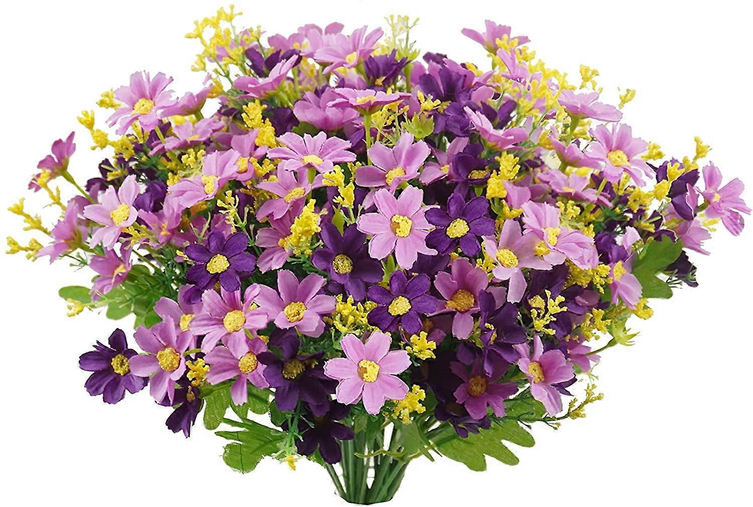 6 Bundles Artificial Daisy Mums, UV Resistant Fake Flowers for Indoor Outdoor, Orange Yellow Greenery for Home Wedding Office Garden Décor