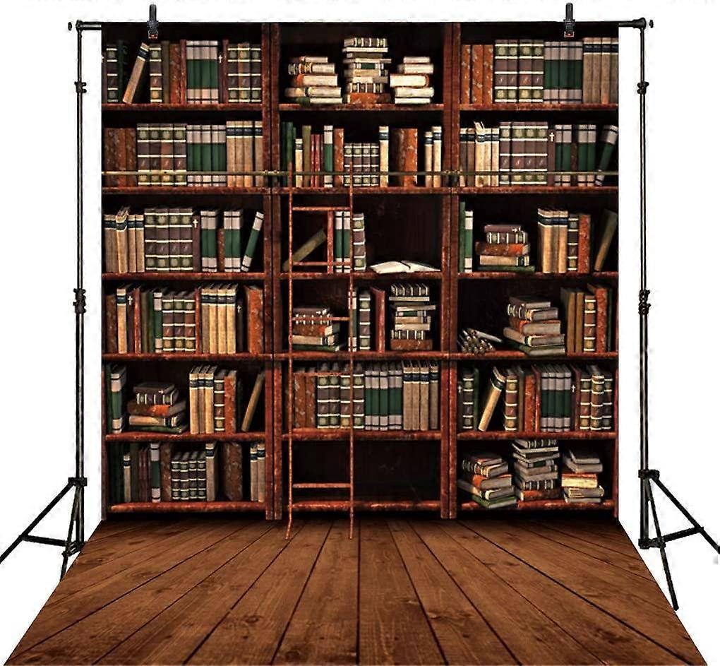 5X7FT Bookshelf Wood Floor Photography Backdrop Retro Library Vintage Bookcase Ladder Magic Books Office