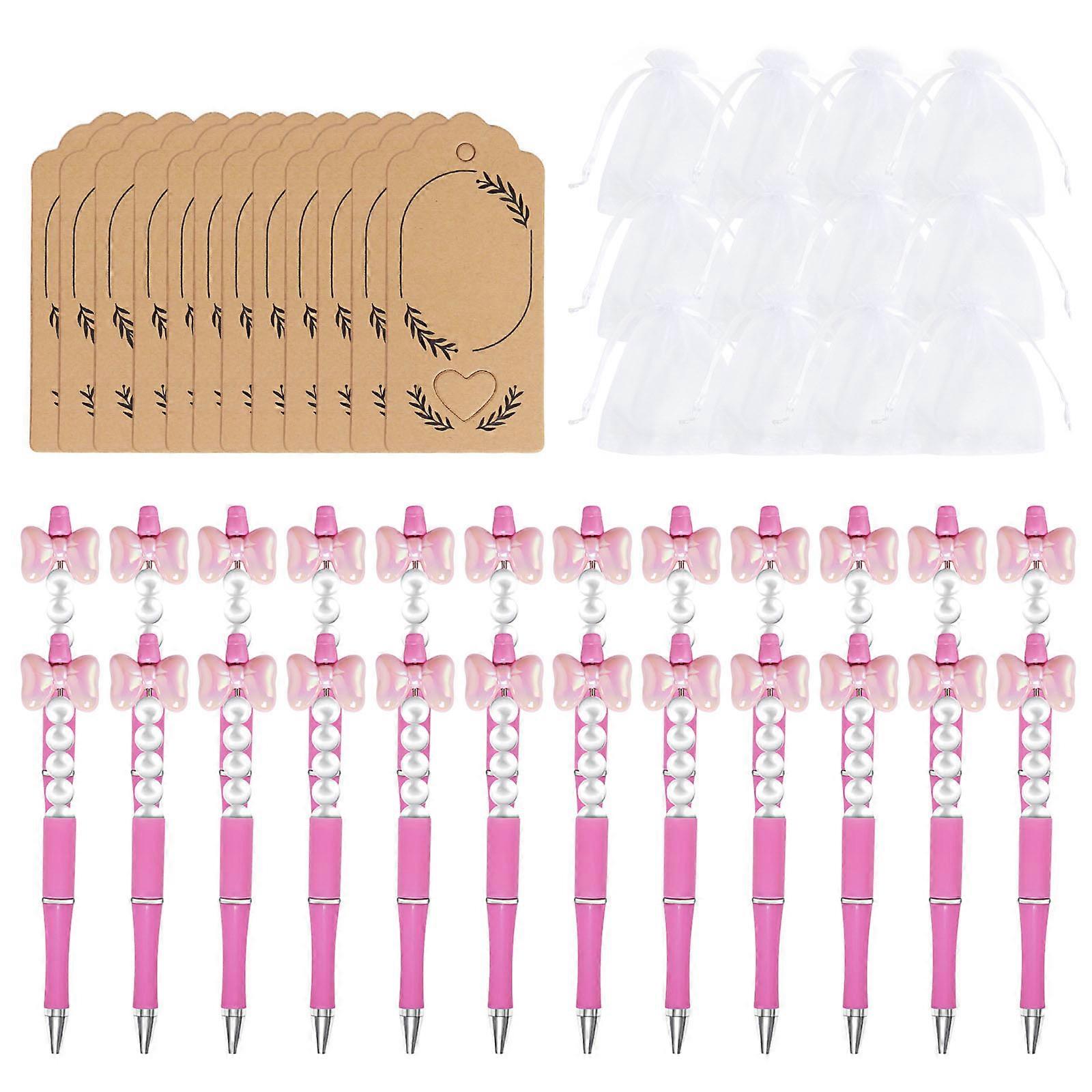 12PCS Beaded Gel Pen with Thank You Label and Drawstring Bag Appreciation Pen Set for Kid Student Teacher Employee Multicolor