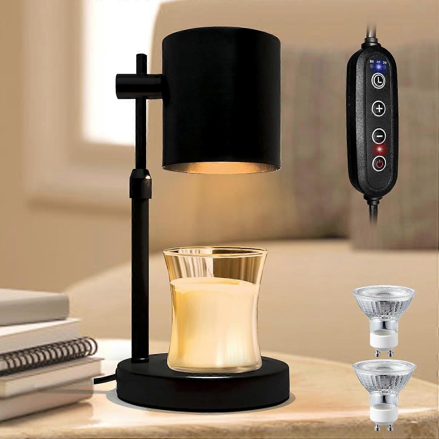 Candle Warmer Lamp with Timer & Dimmer, Electric Wax Melts Warmer for Jars, Adjustable Height, Home Gift (2 Bulbs, Black)