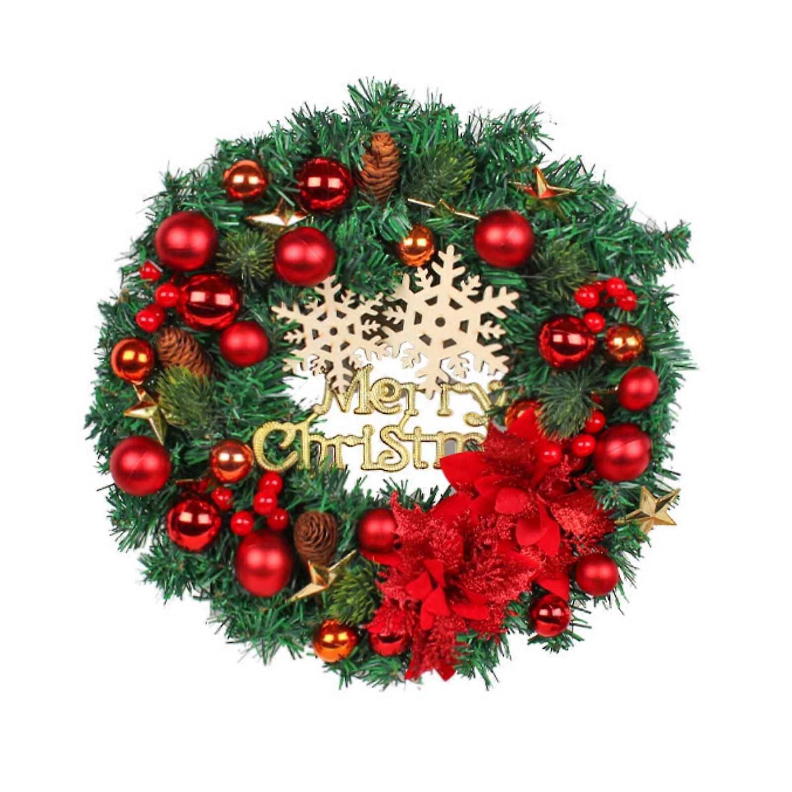 Christmas Ball Wreath 16" Xmas Wreaths Ornaments Glitter Thicken Shatterproof Garland Decoration for Door Wall Mantel Holiday Party Decor