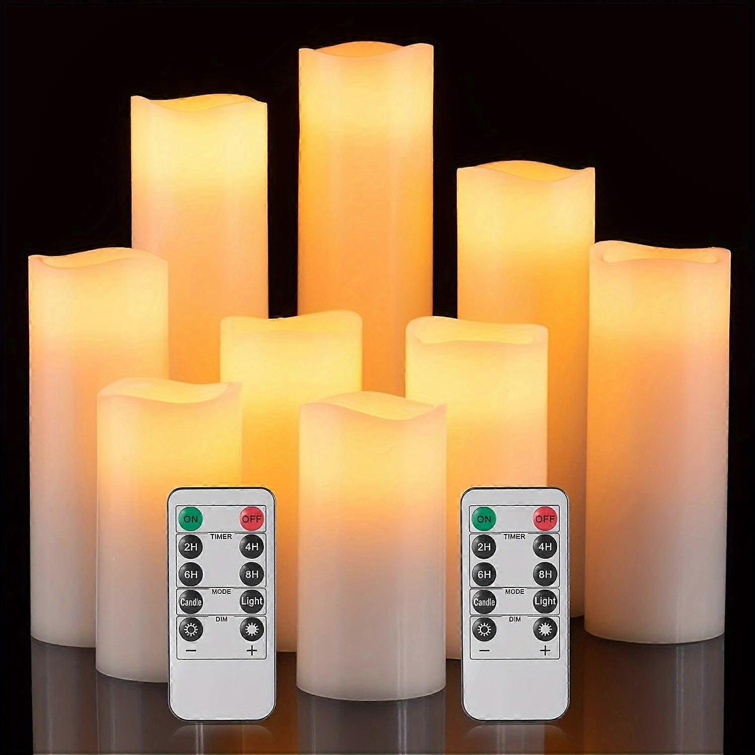 Flameless LED Candles, Battery Powered, 9-Piece Ivory White Wax Column Set with Remote & 24H Timer, Compatible with Real Wax