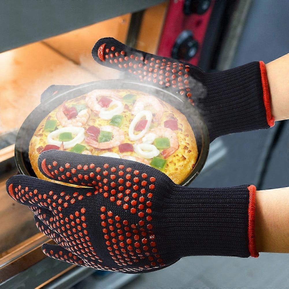 Lolmot Unisex Barbecue Microwave Oven High Temperature Insulation Anti-scalding Gloves Heat Oven Welding Gloves for Kitchen Cooking Baking