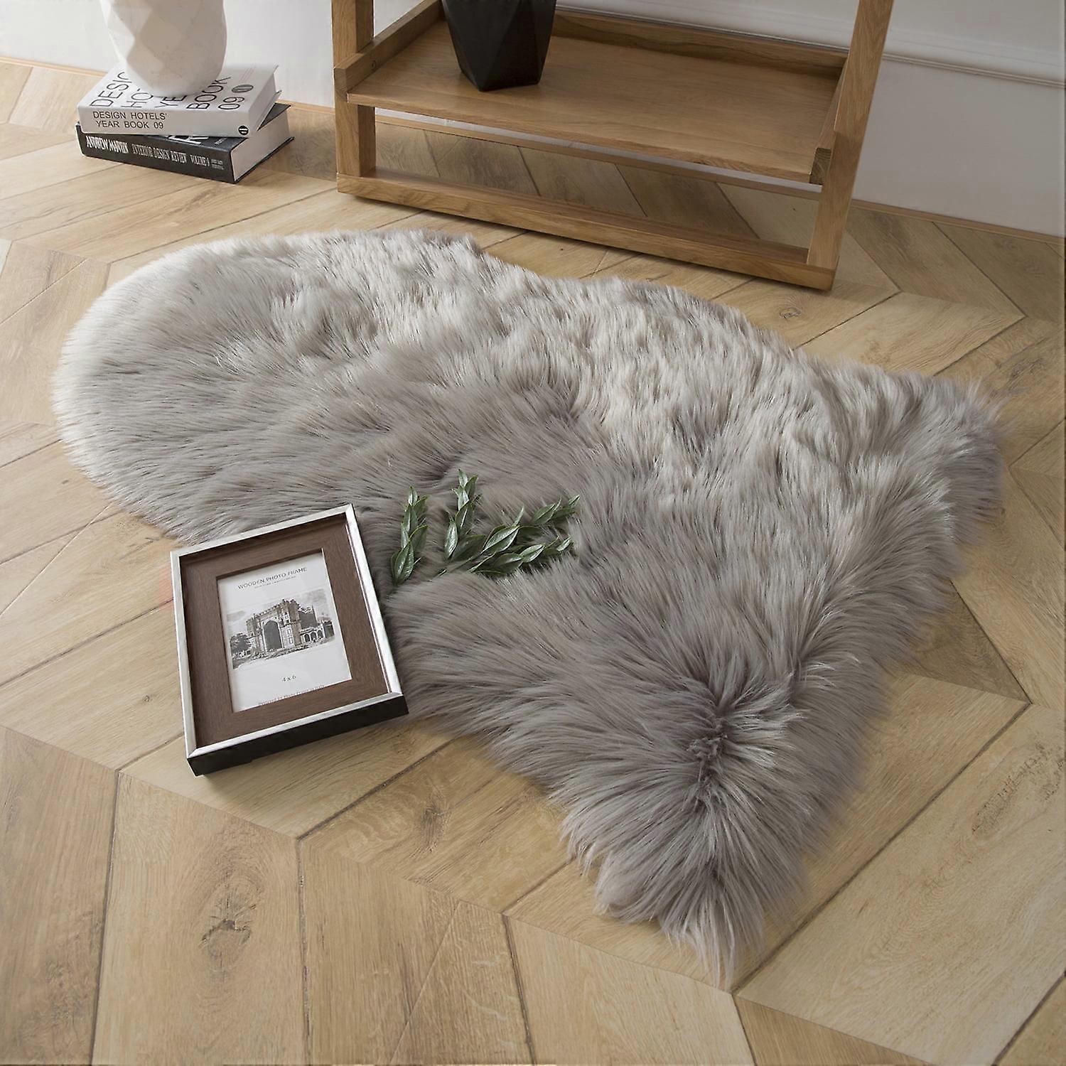 Phantoscope Deluxe Soft Faux Sheepskin Fur Collection Asymmetrical Area Rug, Gray