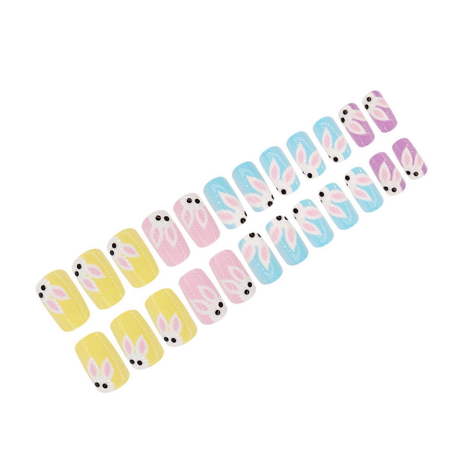 24pcs Square Press On Nail with Rabbit Pattern Short Artificial Nail Full Cover False Nail Manicure Nail Art for Women Multicolor