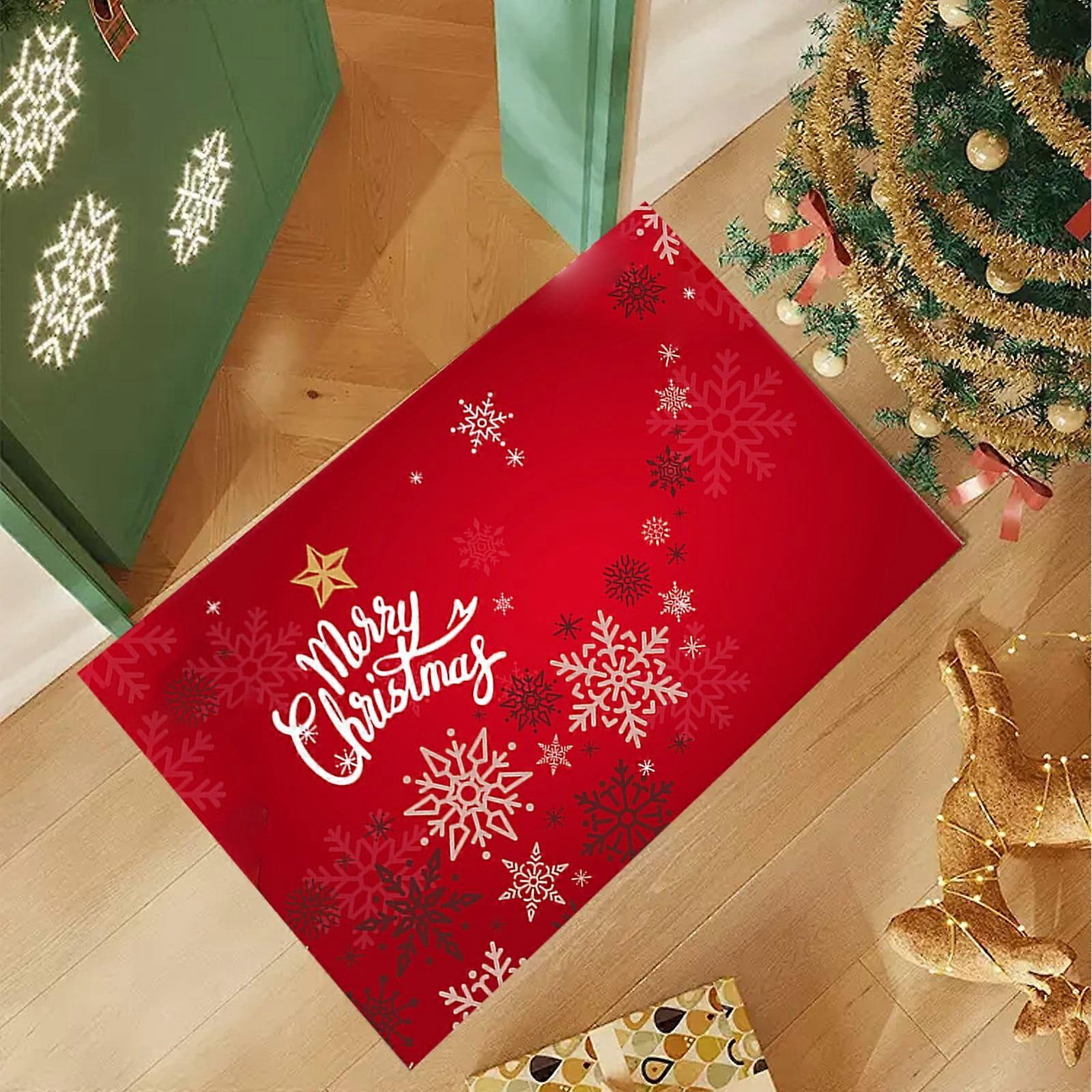 Quinlirra Christmas Bathroom Decor - Red & White Snow Non-Slip Bath Mat, Microfiber Absorbent Shower Rug, Cute Holiday Home Decor