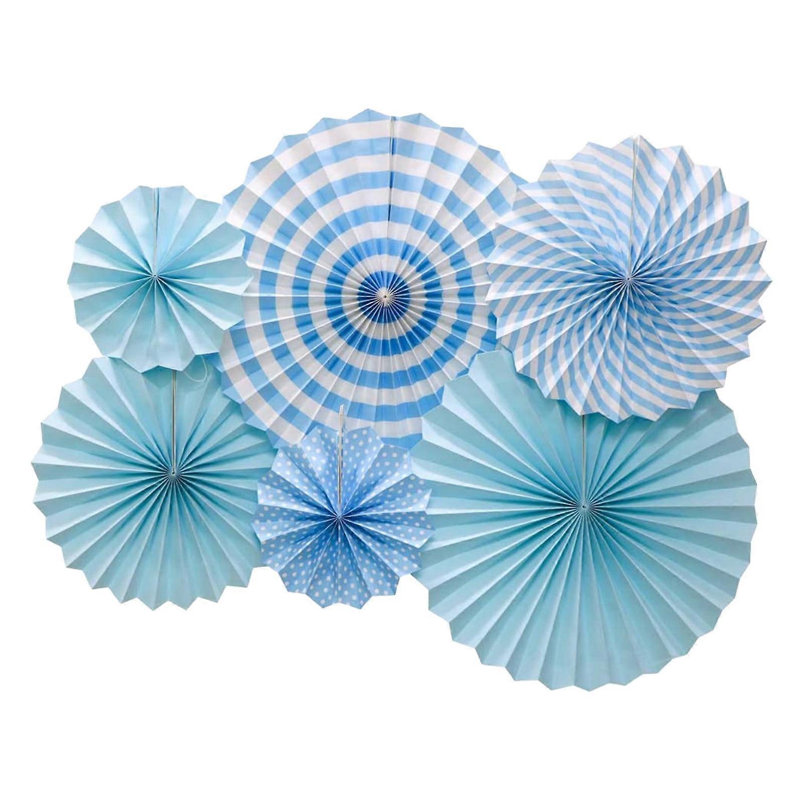 Poaug Paper Fans Set of 6, Silver Round Pattern, Compatible with Party Decorations for Birthday, Shower, Graduation, Retirement, Blue