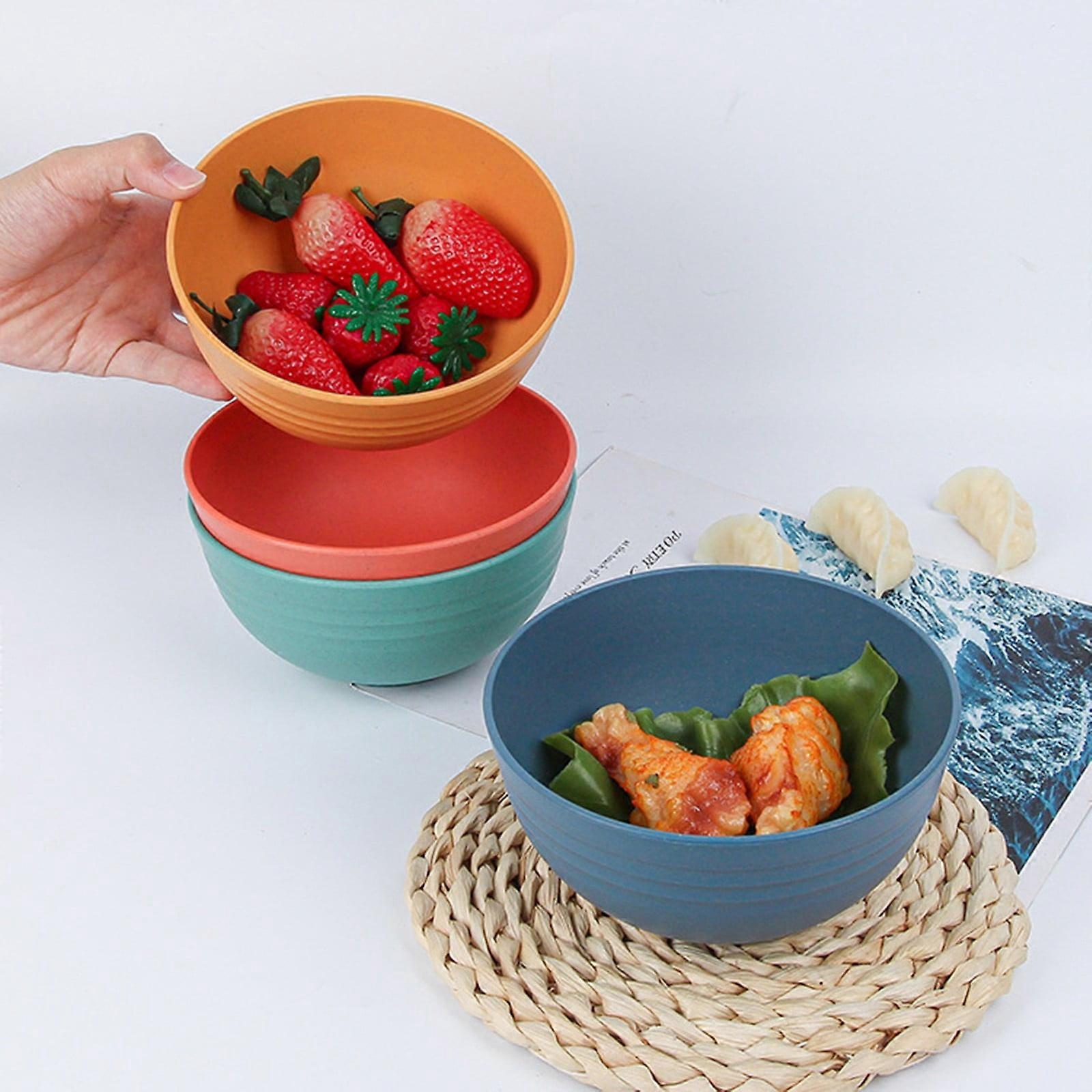 4pc Rice Bowl Household Instant Noodle Bowl Soup Noodle Bowl Student Dormitory Plastic Striped Bowl