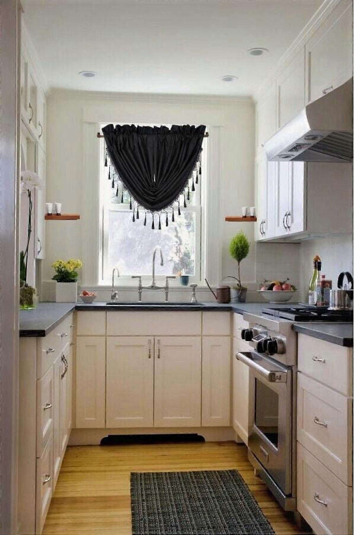 1 rod pocket waterfall swag valance curtain with tassels beads for window