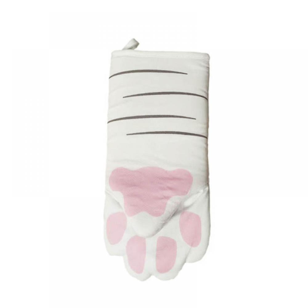 Prettyui 1pc Heat Resistant Non-slip Gloves 3D Cartoon Animal Cat Paws Oven Long Mitts Microwave Cotton Baking Insulation Gloves