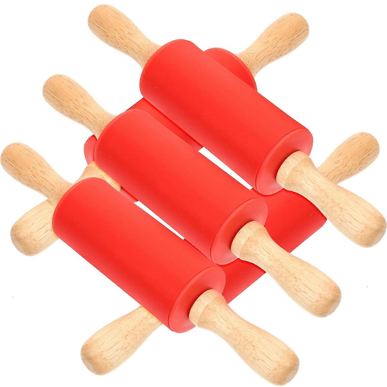 5 Pcs Rolling Pin Toys Rollers Dough Wood Baking Pretend for Kids Kitchen Tool Small Child