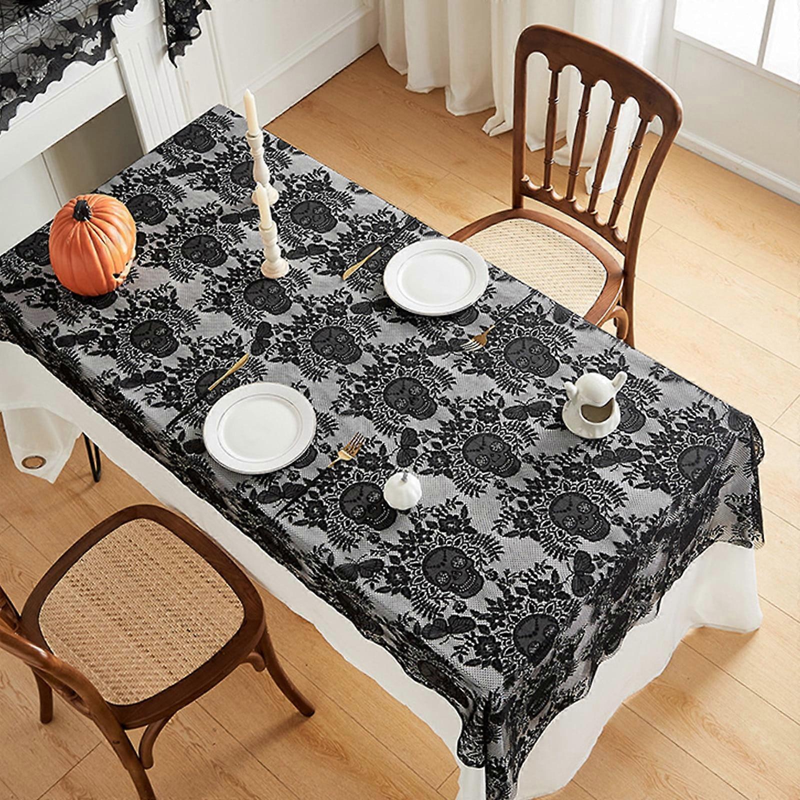 Black Lace Tablecloth 39.3x86.6" Floral Eyelash Mesh Rectangle Tulle for Halloween Party Rustic Wedding (1 pc)