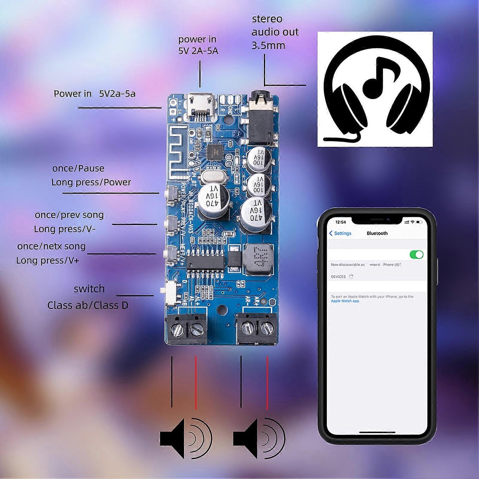 SUSUchens Power Amplifier Board Stereo Fast Heat Dissipation PCB Bluetooth-compatible 5.0 Class D Digital AMP for Loudspeaker Black