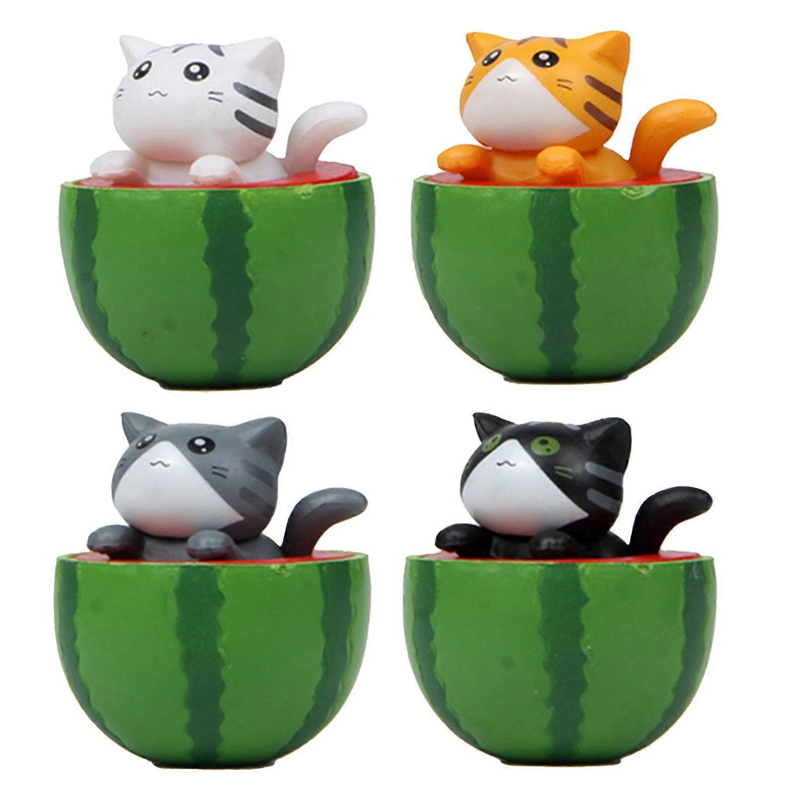 4Pcs/Set Vivid Appearance DIY Handicraft Cartoon Statue Cute Animal Cat Sitting on Watermelon Miniature Figurine Home Decor-Watermelon