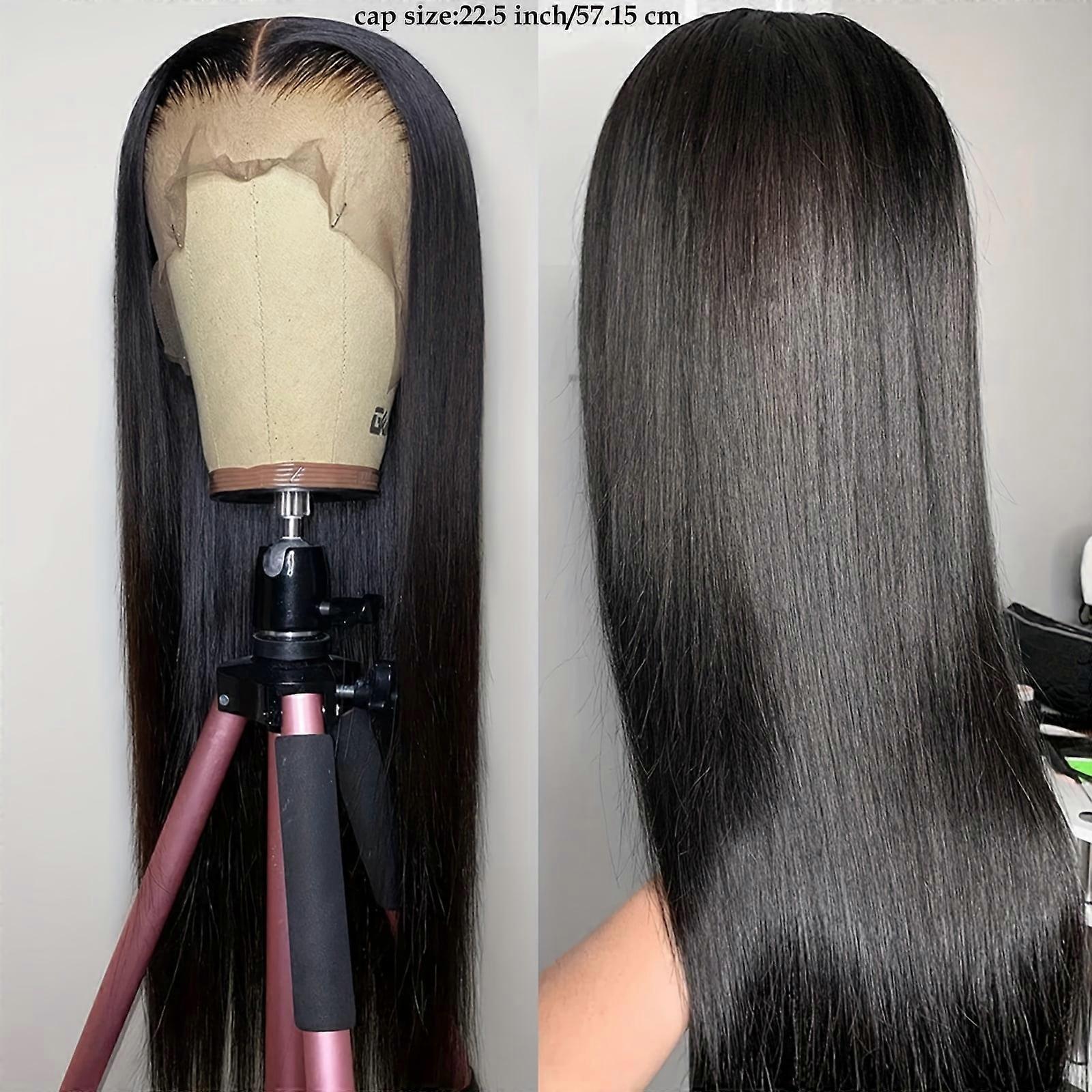 13x4 Black Lace Front Wig, Long Straight 26 inch, Natural Hairline, Glueless, Heat Resistant Synthetic Fiber, compatible with Daily & Party