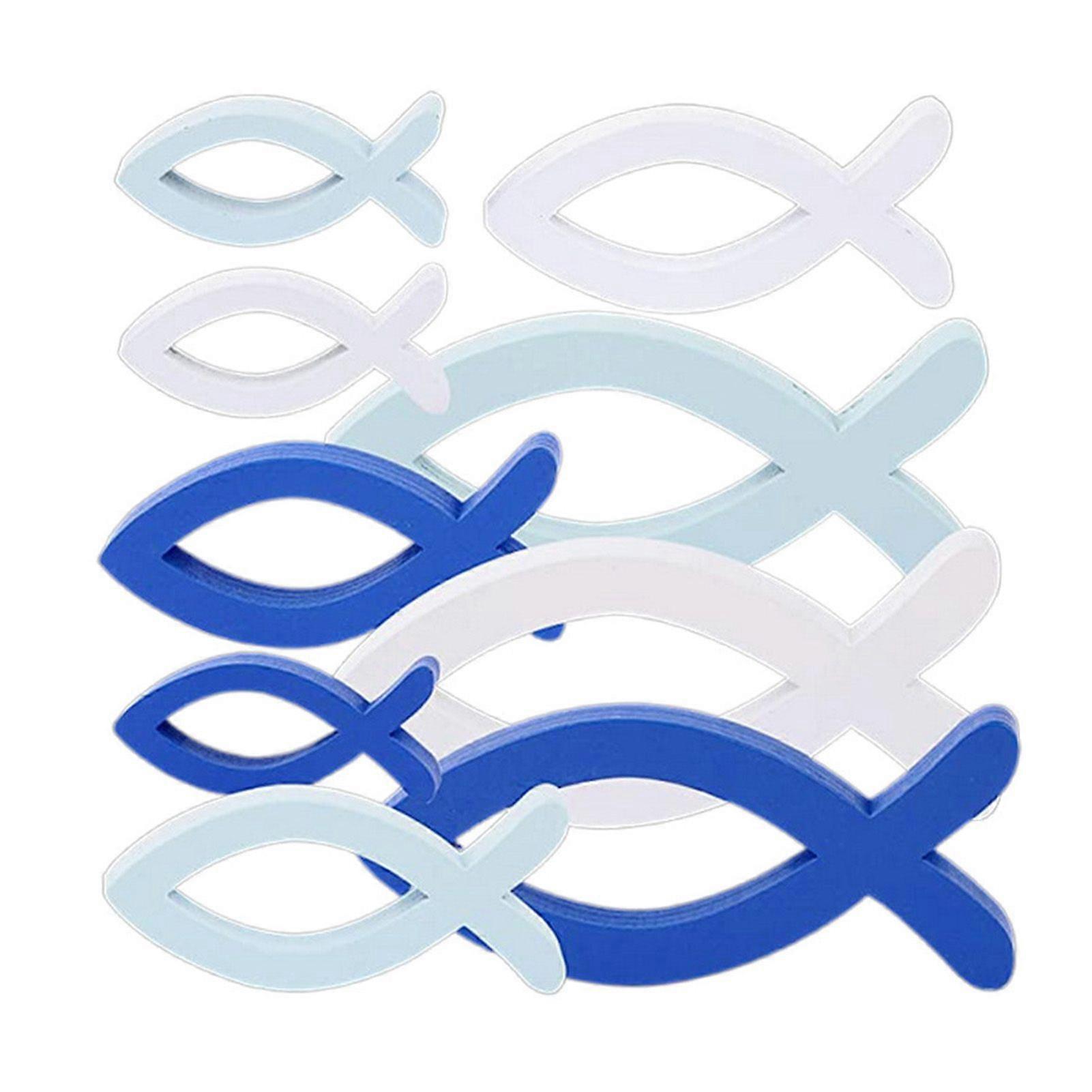 Kaesi 9Pcs/Set Wooden Hollow Fish Wall Decoration Nautical Coastal Ocean Theme Hanging Ornament School of Fish Beach Lake House Bathroom Wall Art