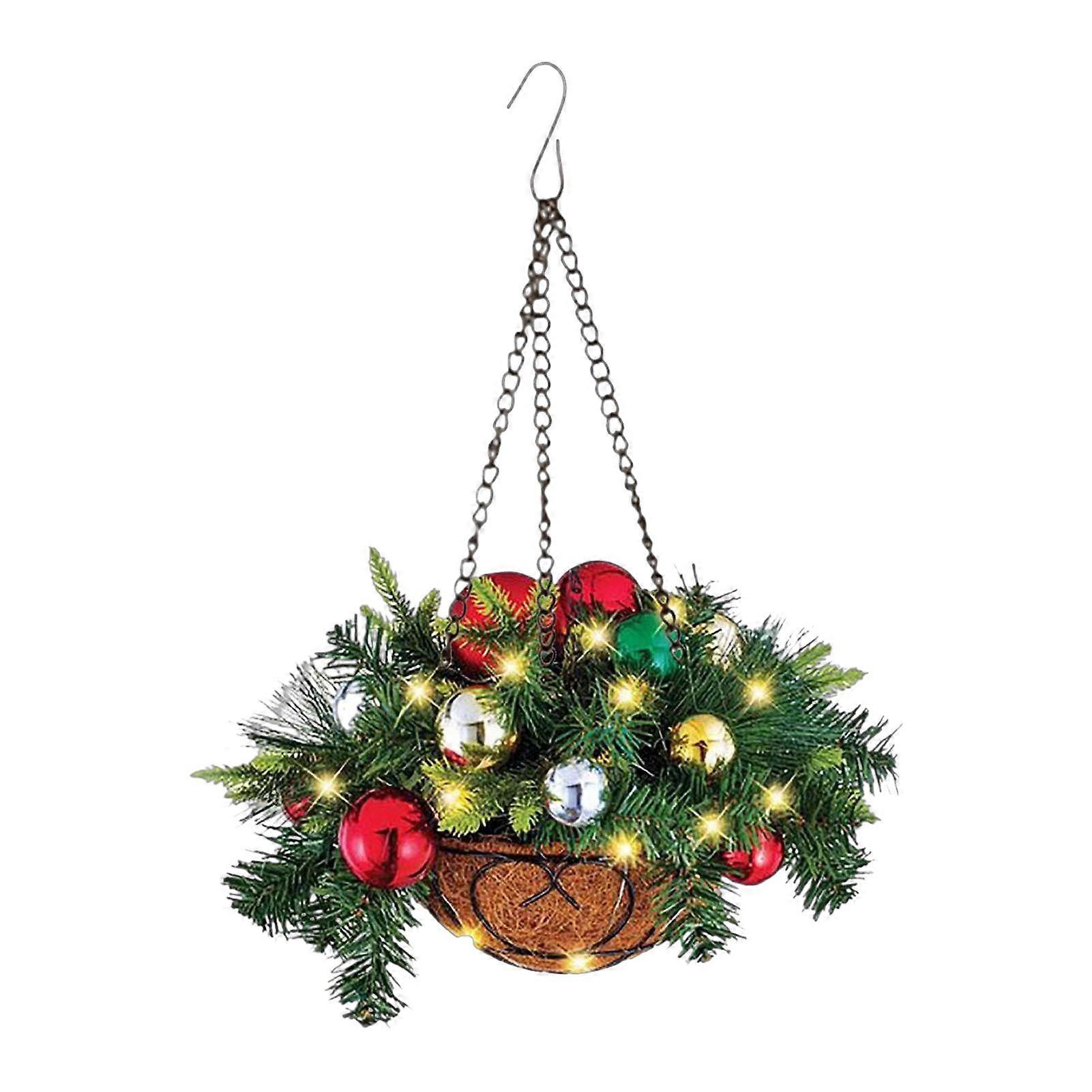 Kaesi Christmas Hanging Baskets Pre-Lit Artificial Basket with LED Lights Pine Cones Berries Winter Outdoor Planter for Outside Porch Front Door Decor