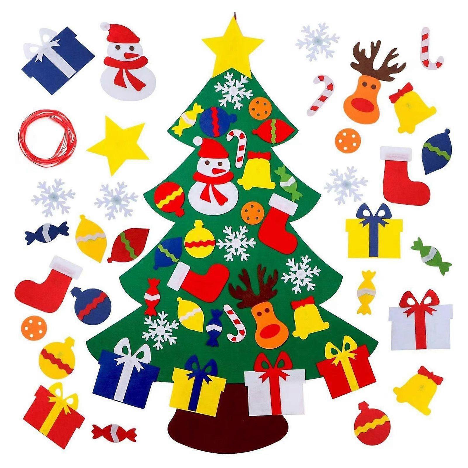 Kaesi Felt Christmas Tree for Toddlers DIY Xmas Tree Set with Ornaments Indoor Christmas Door Wall Hanging Decorations Xmas Activities Gifts for Kids
