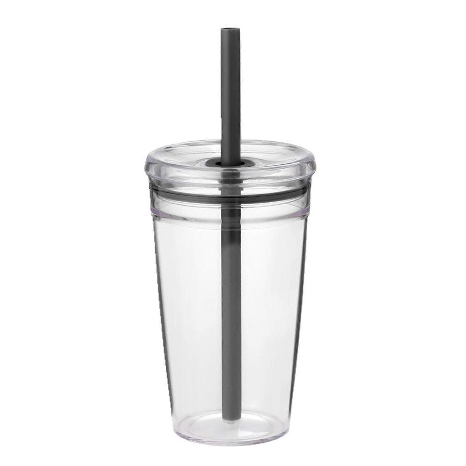 Kaesi Water Cup with Lid And Straw 450ML BPA-Free Reusable Iced Coffee Cup Clear Plastic Drinkware for Tea Smoothies