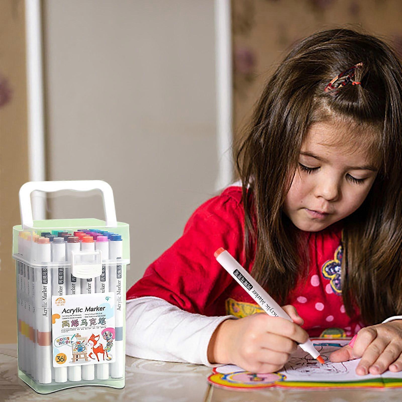 FloHua 24PCS Acrylic Marker Set for Kids, Washable Watercolor Pens, Non-Permeable, Stackable, Back to School Supplies Clearance - Compatible with art