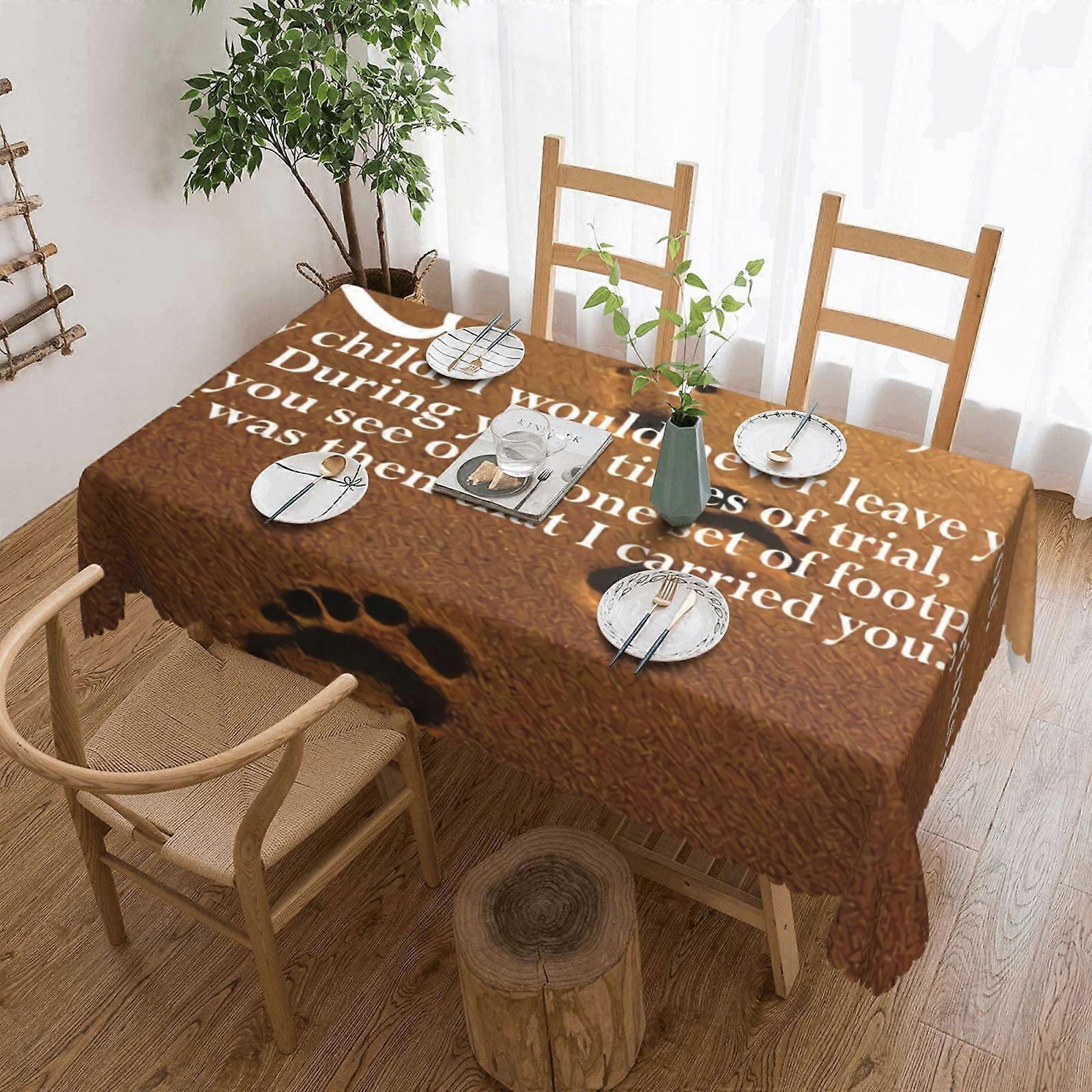 Footprints In The Sand Poem Tablecloth, Water Resistance Spillproof Table Cloth For Thanksgiving/Christmas Family Tablecloth