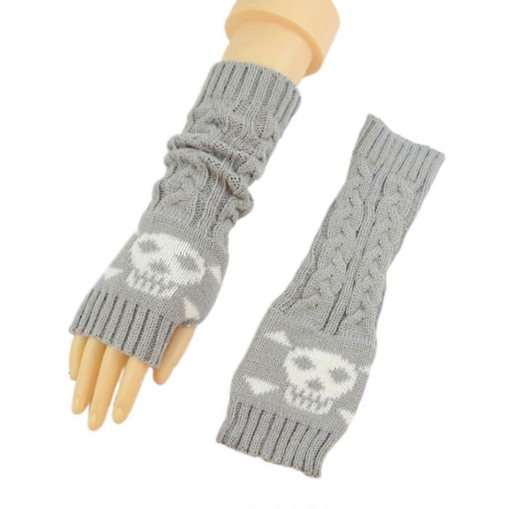 Punk Gothic Skeleton Gloves Fingerless Arm Sleeves Long Arm Warmer Half Finger Gloves Knit Arm Covers Cosplay Gloves Light gray white skull