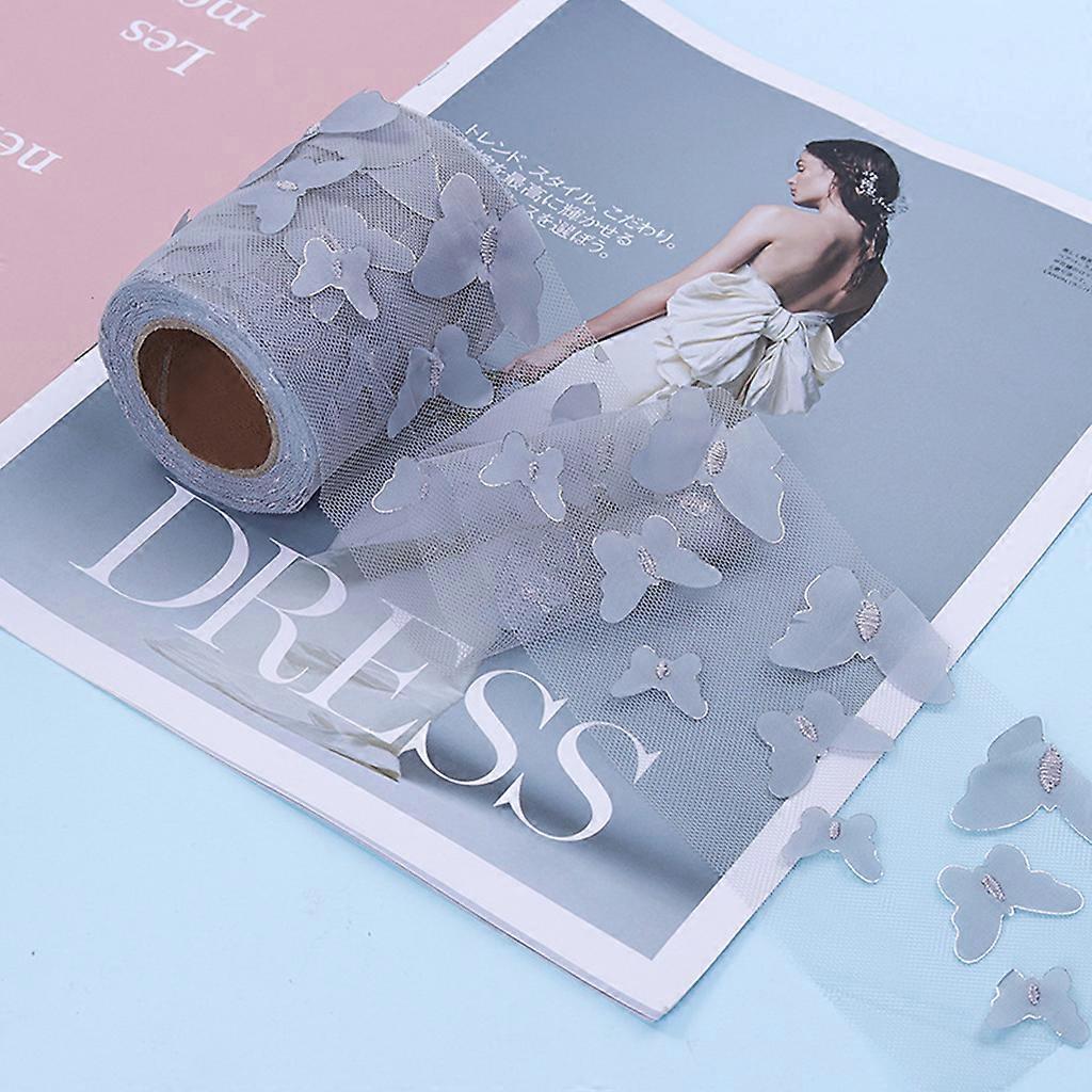 Wedding & Engagement Decoration Festival Supplies Macaron Color 3 D for Butterfly Tulle Roll Gauze Ribbon 6cm 10 Yards Light gray