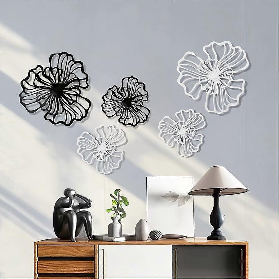 5pcs Iron Wall Sculpture Decor, Multicolor Double Layer Flower Hanging, Compatible with TV Background Wall & Living Room