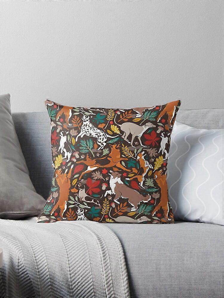 AIVO Autumn Paw-fection Brown Oak Background Dogs Jumping Dancing Fall Leaves Throw Pillow Cover Case Compatible with Two Side Sofa