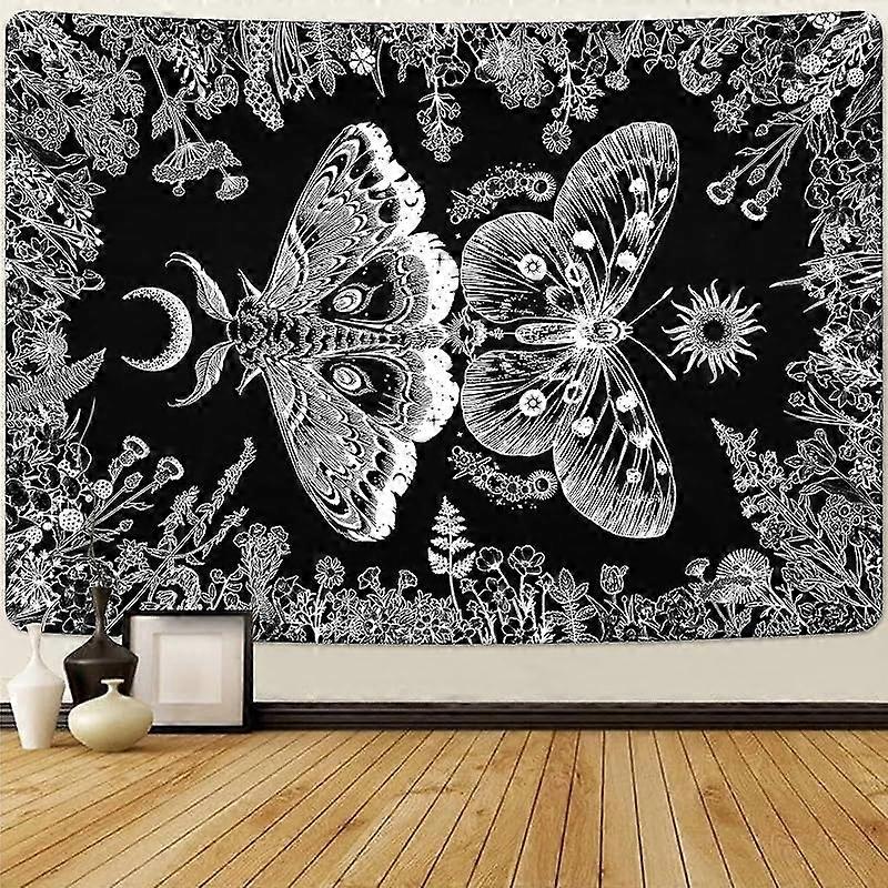 Black and White Aesthetic Butterfly Tapestry Plants Flowers Tapestries Boho Moth Tapestry Moon Garden Tapestry Tapestry Wall Hanging for Bedroom Dorm