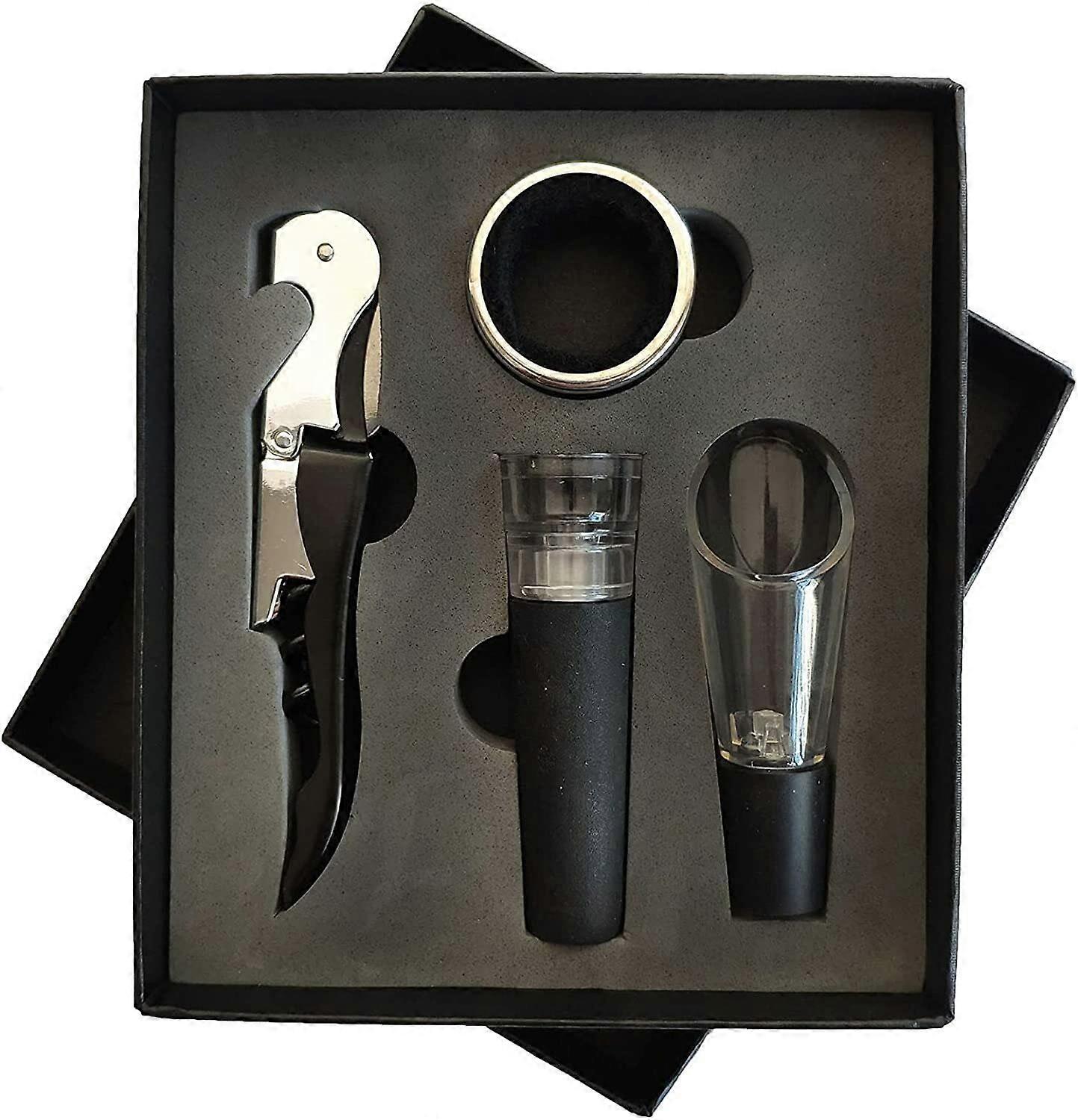 4pcs Wine Opener Set with Corkscrew, Vacuum Wine Stoppers, Bottle Opener Kit in Case for Home Bar