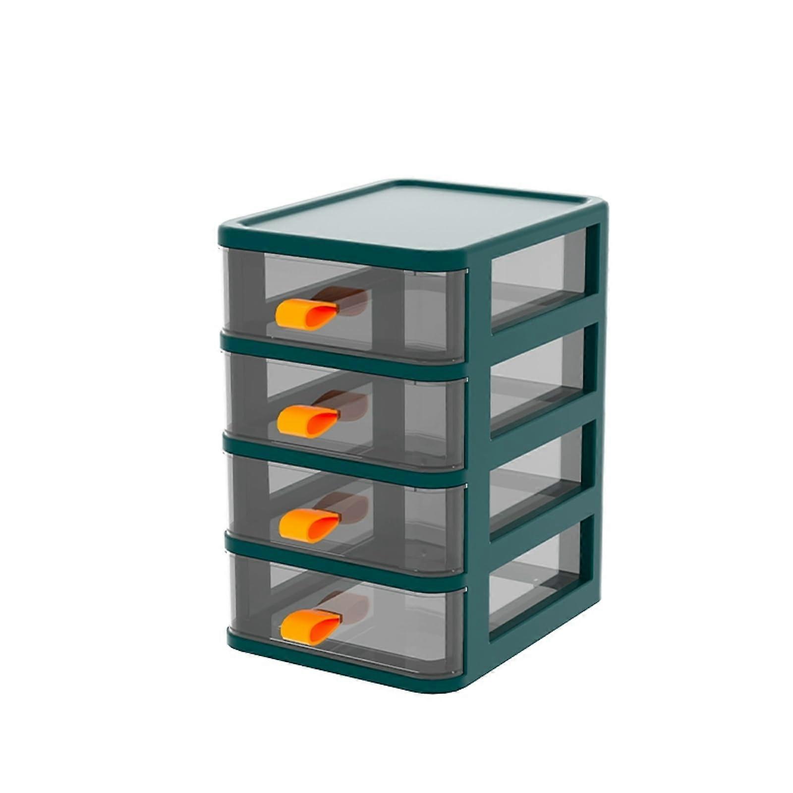 Plastic Storage Drawer Organizer with Clear Wide Drawers, Dark Green, 4Tier for Bathroom, Desk, Cabinet, Fridge
