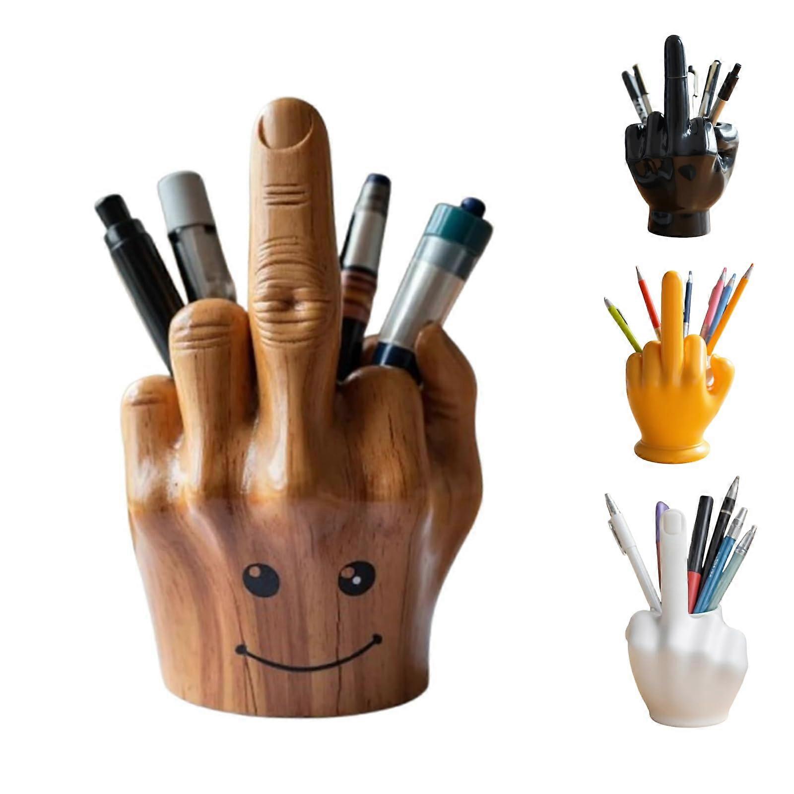 Middle Finger Pen Holder 3D Hand Gesture Desk Organizer Funny Office Decoration Brown