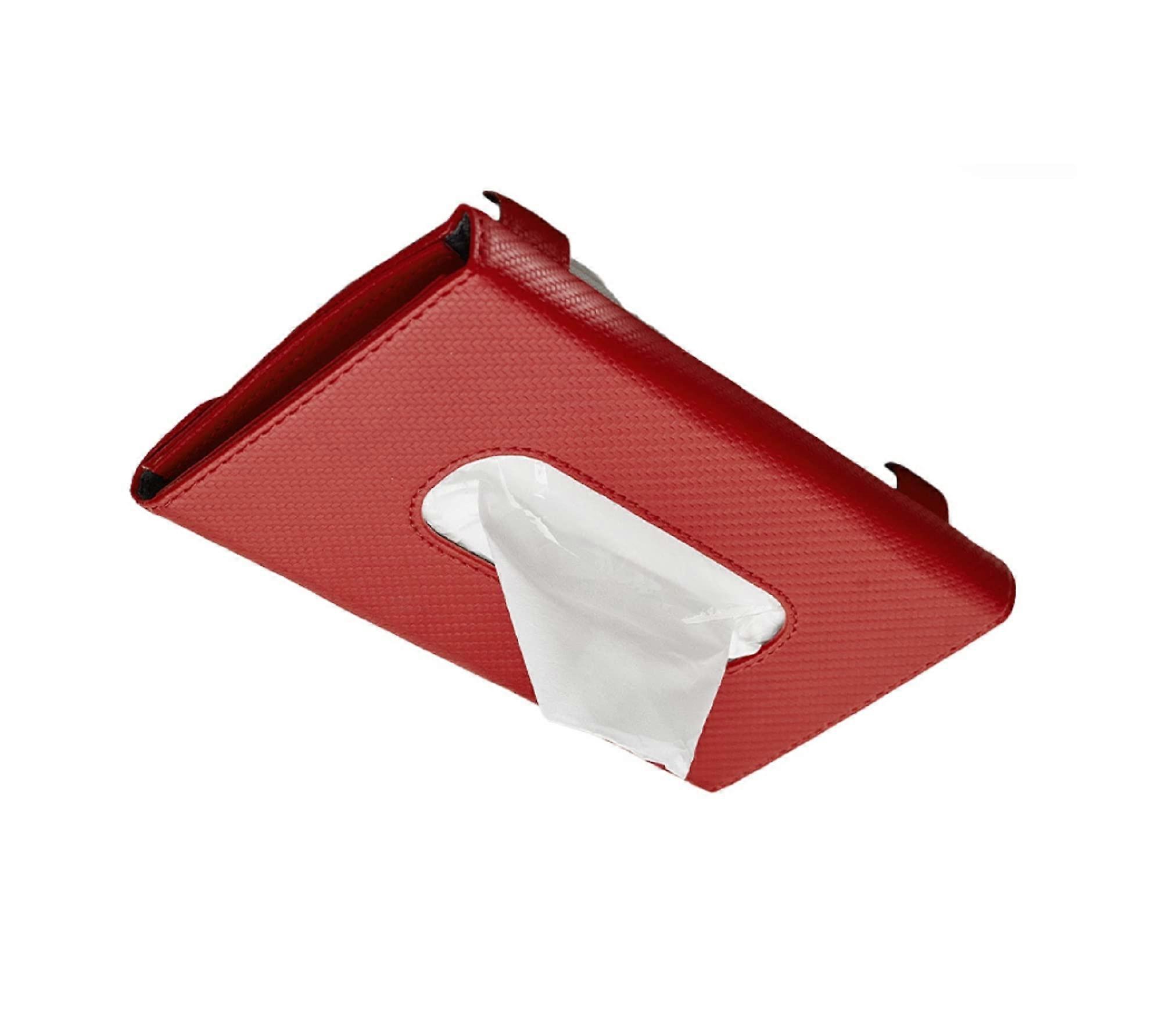 PU Leather Car Tissue Box Holder with Visor Clip, Rectangular Dispenser for Home, Office, Bathroom, Bedroom (Red, Pack of 1)