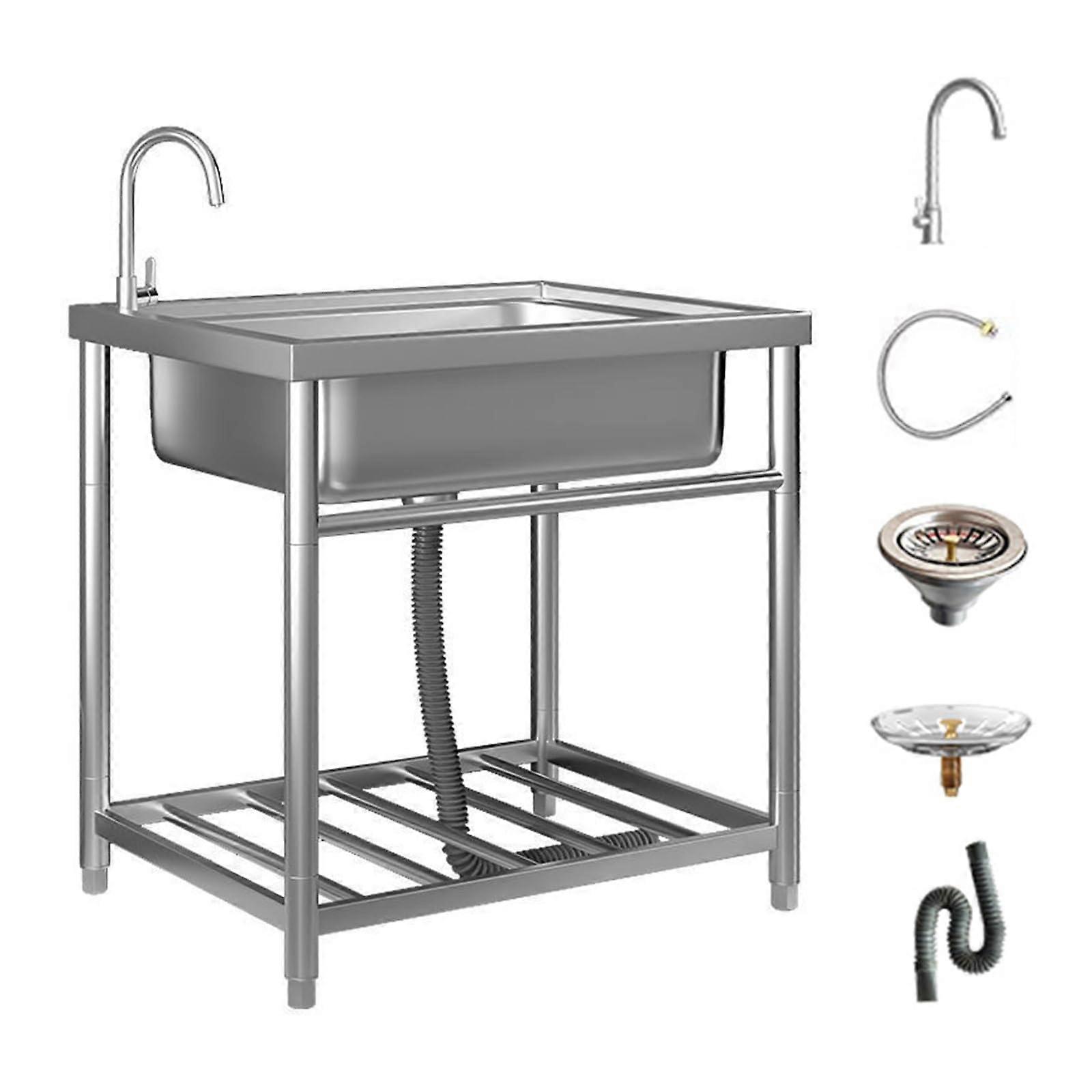 Utility Sink Standing Stainless Steel Single Bowl with Hot and Cold Faucet for Laundry Room Bathroom Farmhouse Outdoor (65x50x75cm)