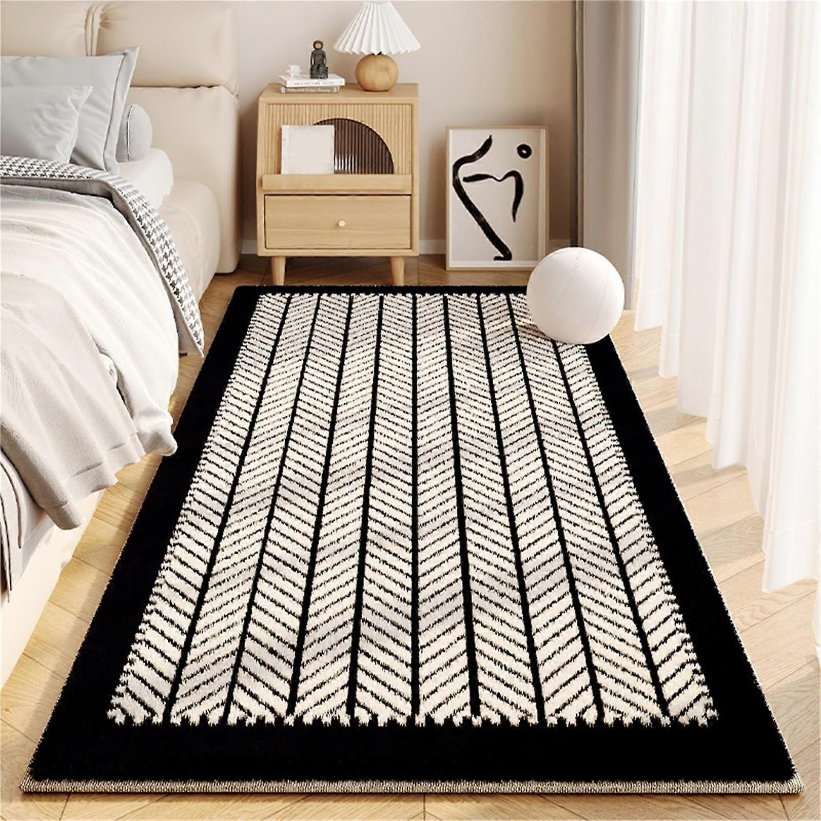 Plush Bedroom Rug with Long Pile, Soft NonSlip Bedside Carpet, Easy Care SquareG 60x160cm