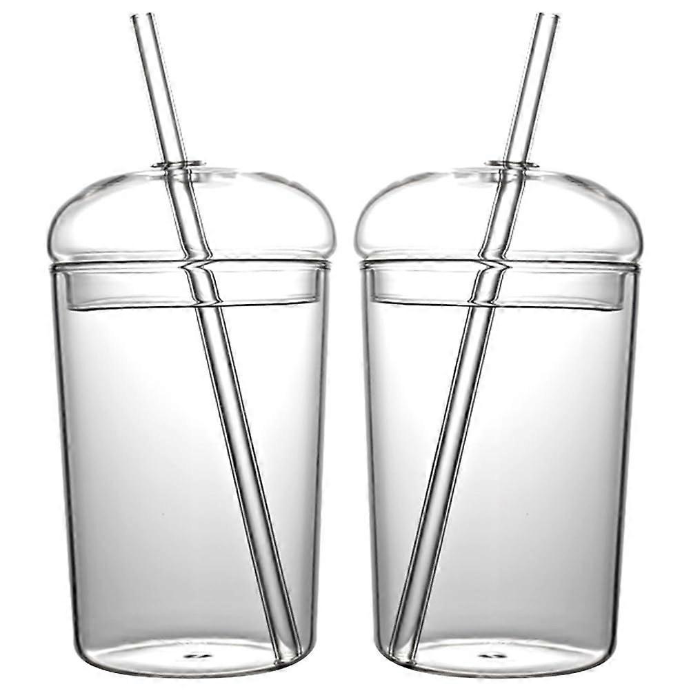 2 Pack Large Glass Drinking Cups with Straws – Wide Mouth for Coffee, Juice, Iced Beverages, Easy Clean
