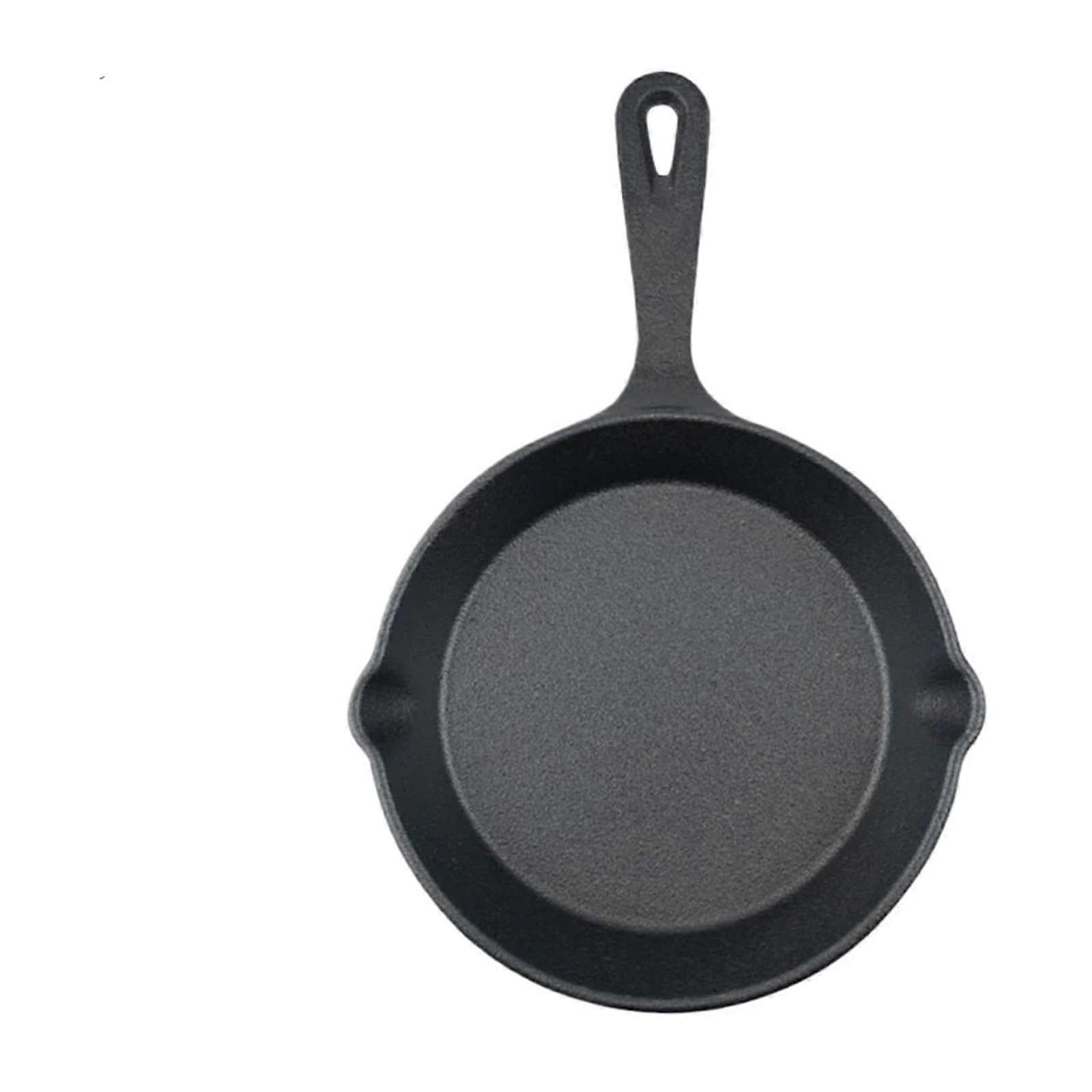 Cast iron skillet with handles — versatile, durable cookware for eggs, steak, sandwiches, and waffle grilling. Key benefits Reliable heat performance: Cast iron construction holds heat evenly to help achieve consistent browning and searing across food. Multipurpose use: Designed for frying eggs, searing steak, grilling sandwiches and preparing waffles, reducing the need for multiple specialty pans. Secure handling: Builtin handles provide stable grip for moving, flipping, or transferring between cooktop and grill. Fits standard kitchen use: Sized and shaped for everyday cooking tasks and routine kitchen operations. Longlasting material: Cast iron resists wear from regular use and maintains cooking performance over time. What this solves Replaces several singlepurpose pieces of cookware, saving space and simplifying meal prep. Improves cooking results for foods that require steady heat or a good sear. Makes transitioning between stovetop and grilling straightforward thanks to sturdy handles and rugged construction. Practical attributes Material: Heavyduty cast iron for heat retention and reliable surface contact. Function: Frying, searing, grilling and general skillet tasks. Compatibility: Suited to standard kitchen cooktops and grilling setups typically used for skilletstyle cooking. Size: Designed to fit standard, everyday cooking needs. Use scenarios Breakfast shift: Fry eggs and make grilled breakfast sandwiches on one skillet without changing pans between tasks. Sear and serve: Preheat the skillet to develop a strong sear on steaks, then move to the table for serving or to a grill for finishing if desired. Outdoor grilling: Use the skillet on a grill to create pressed sandwiches or to cook wafflestyle batter where a flat, heavy surface and retained heat improve results. Care note Requires the typical upkeep associated with cast iron to preserve performance and longevity. This skillet offers dependable, flexible performance for everyday cooking tasks where even heat and sturdy handling are important.