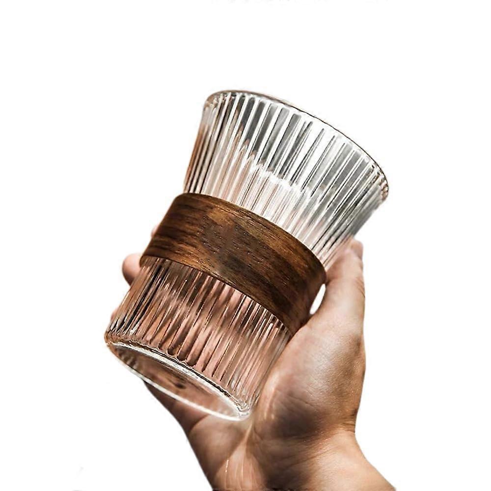 Glass Coffee Mug 350ml with Walnut Wooden Sleeve – Heat Insulated Cup for Tea, Milk, Beer