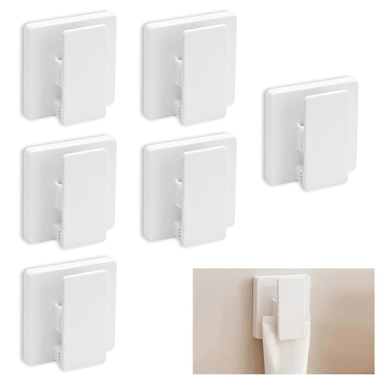 6 Pack Self Adhesive Wall Hooks with Anti Slip Towel Holder, Removable ABS Spring Clips for Bathroom and Home (White)