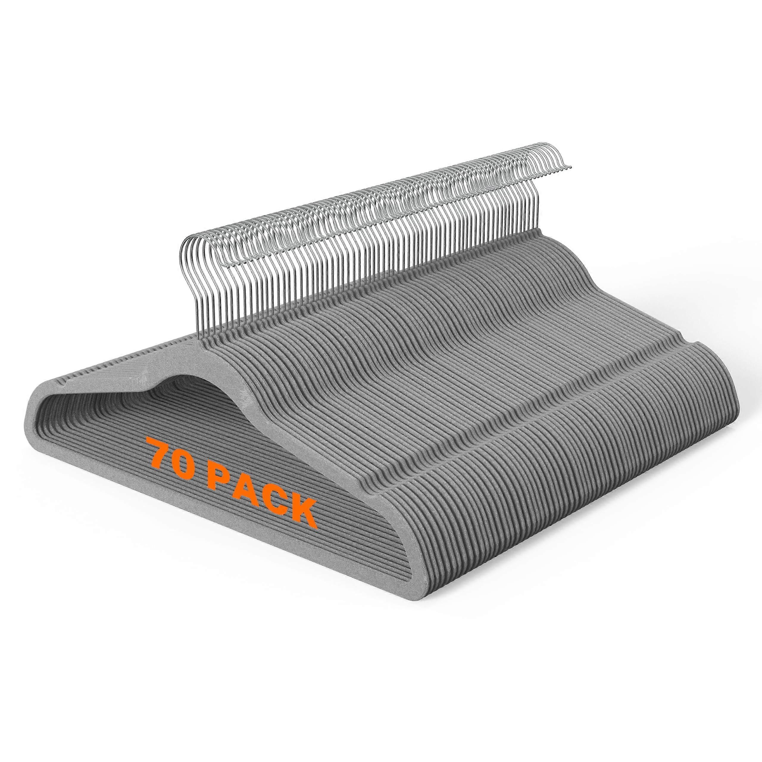 Velvet Hangers 70 Pack Heavy Duty NonSlip Clothes Hangers with 360° Swivel Hooks Grey