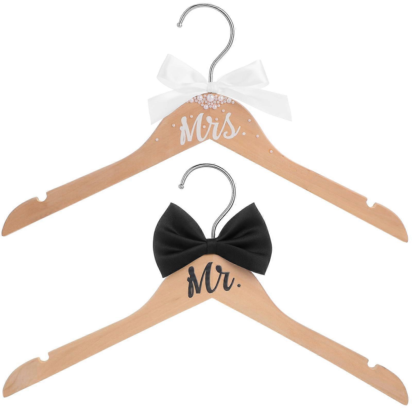 2 Pack Bride and Groom Wedding Dress Hangers with Bow Tie for Bridal Shower and Tuxedo Gift