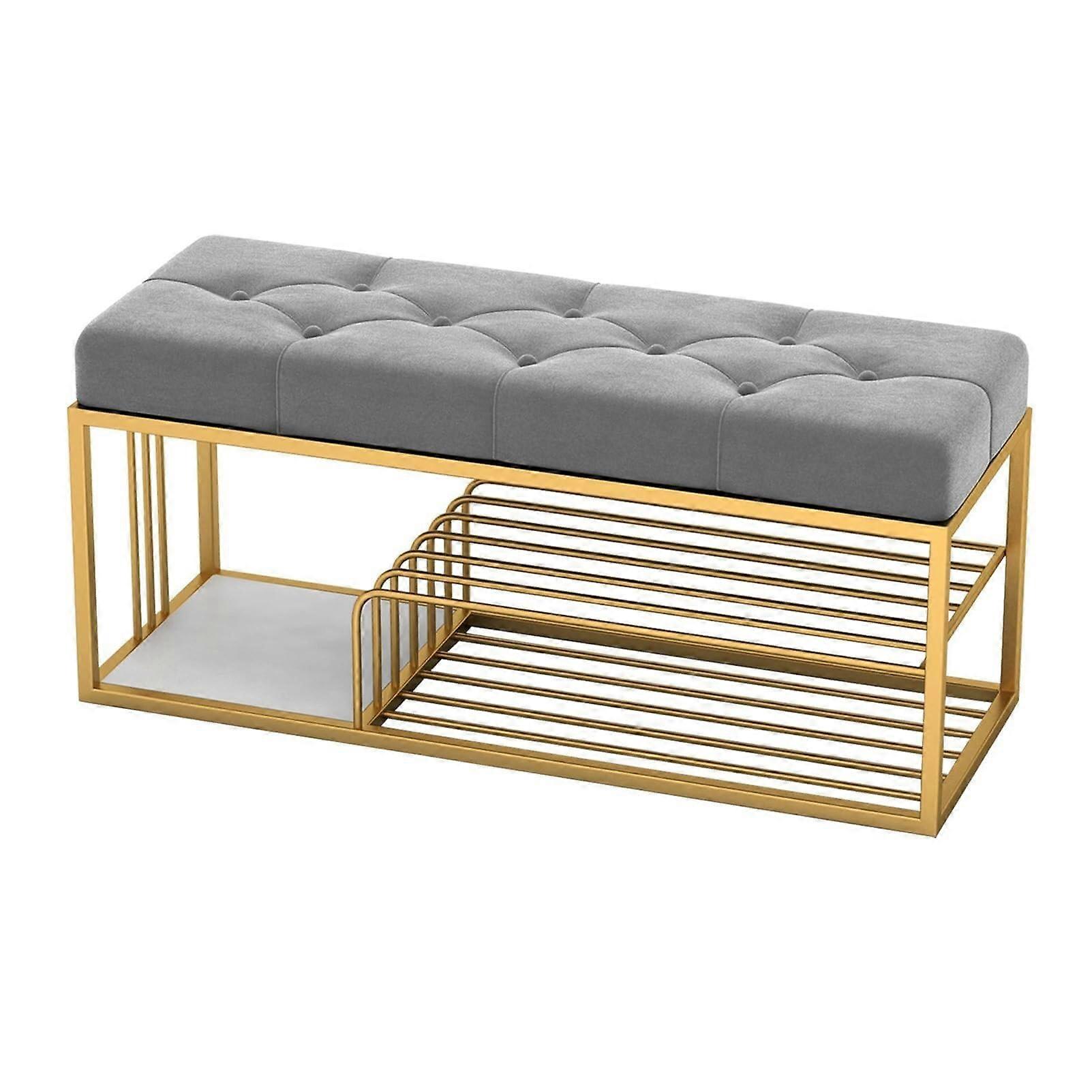 Shoe Rack Bench with 3Tier Storage Shelves for Entryway Hallway Living Room Bathroom Grey