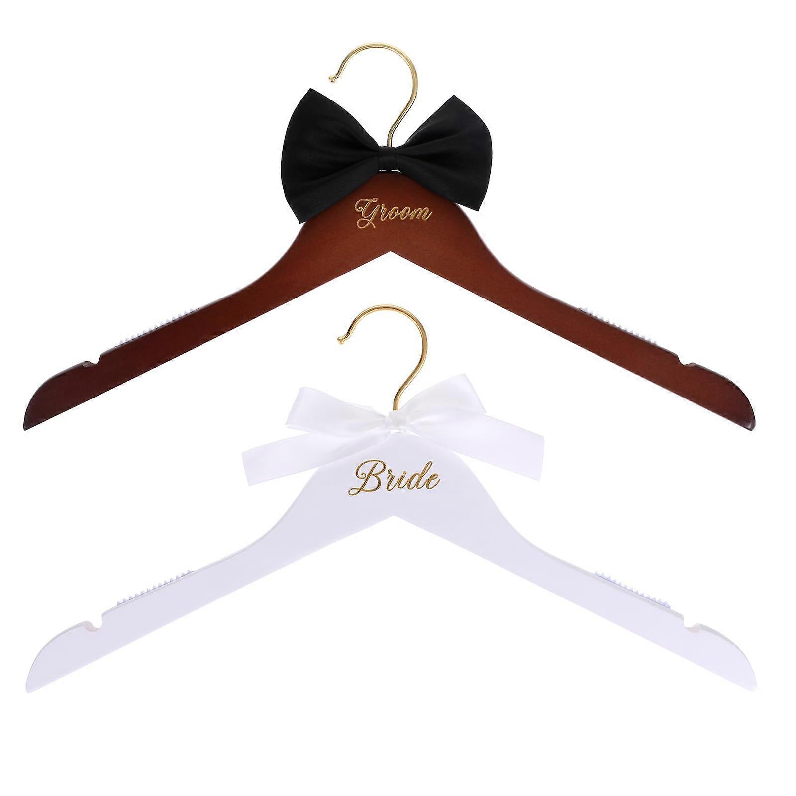 2 Pack Bride and Groom Wedding Dress Hangers with Bow Tie for Bridal Shower and Tuxedo Suit Ref: 8389
