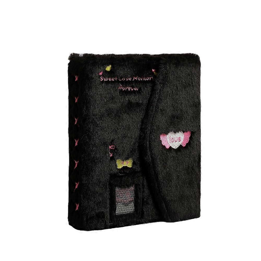 Women's Fuzzy Preppy Photo Album with 80 Photos Capacity Fairycore Wallet Style (Black)