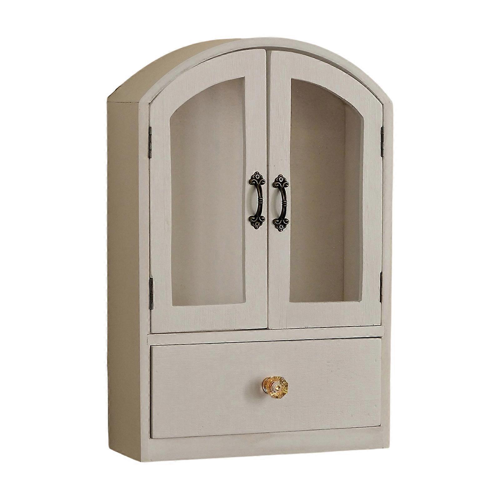 Classical Wood Grains Desktop Shelf Makeup Display Organizers Cabinet Storage Compartments with Drawer Home Office Decors White