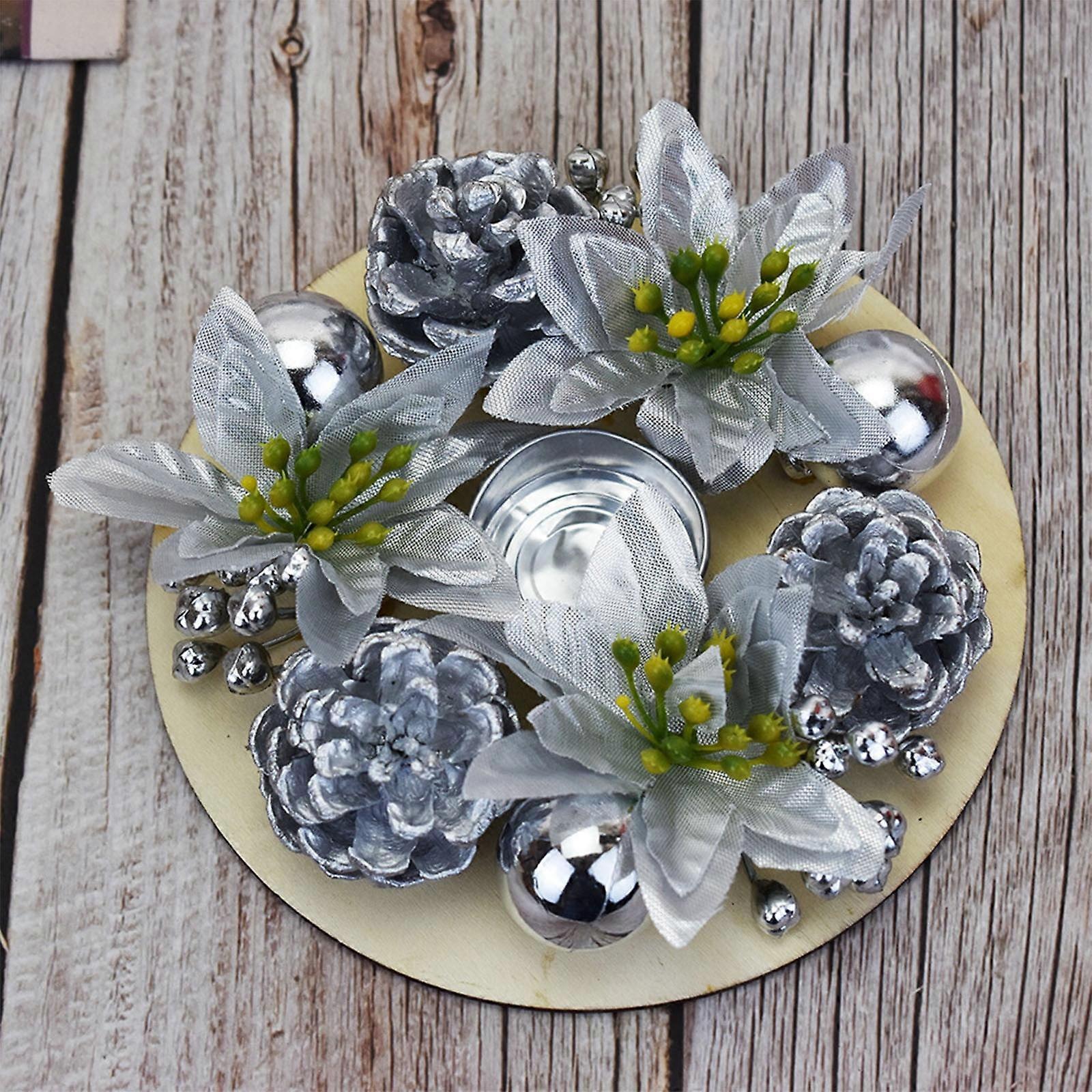 Needle Candlestick Wreath 15cm for Christmas Table Decor, Artificial Leaves Candle Ring Garland, Home Decor, Compatible with Holiday Displays
