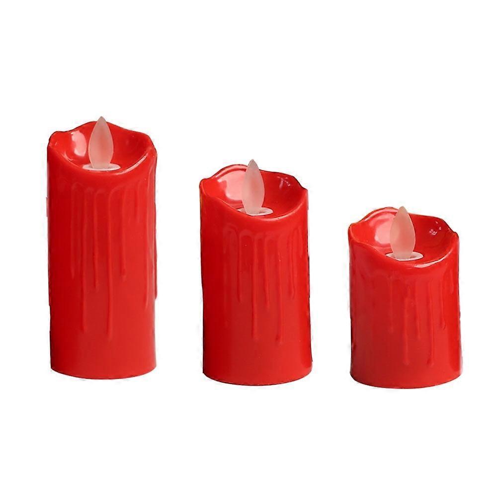 3 Pcs Electronic Candle Light Red Candles LED Anniversary Lamp Decor Simulated Delicate Button Battery Plastic