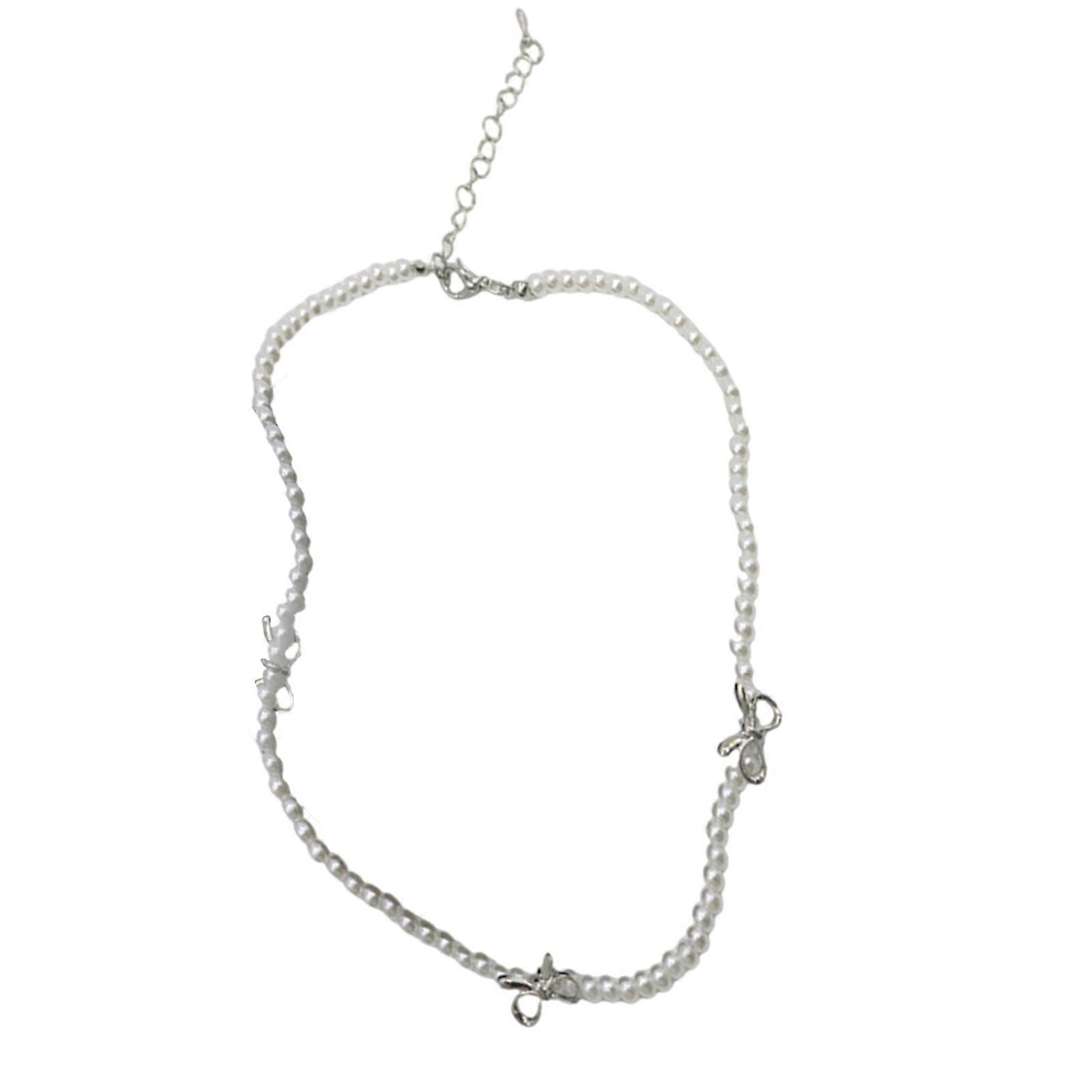 Multipurpose Simulated Pearls Necklace Dateless Bowknot Decoration Effortless Jewelry Choice For Modern Wardrobe White